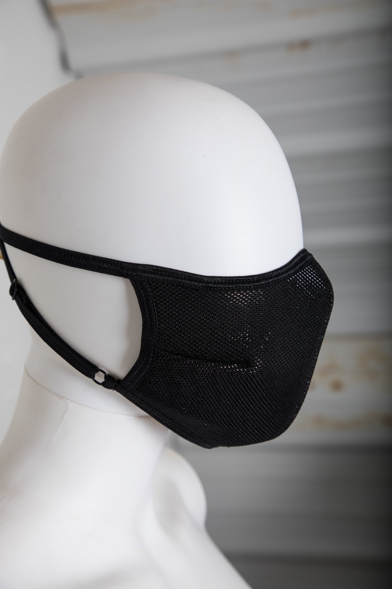 Mask made from squishy scuba fabric that is fused to a glittery, chainmail-like metallic mesh material! It sparkles like a star under lights! Double straps that criss-cross in the back and adjust on both sides. Cotton lining.