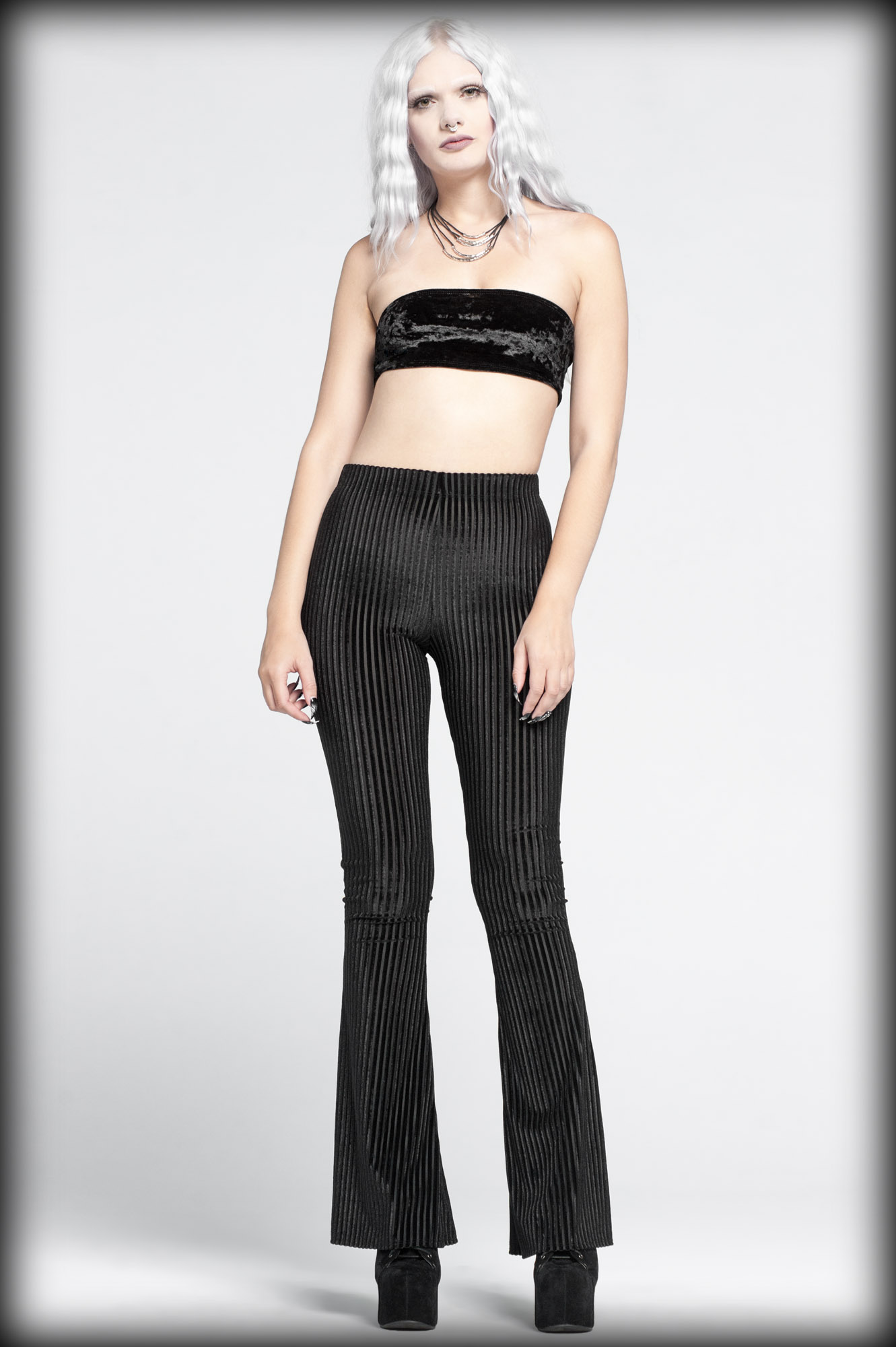 Black stretch velvet bandeau tube top.