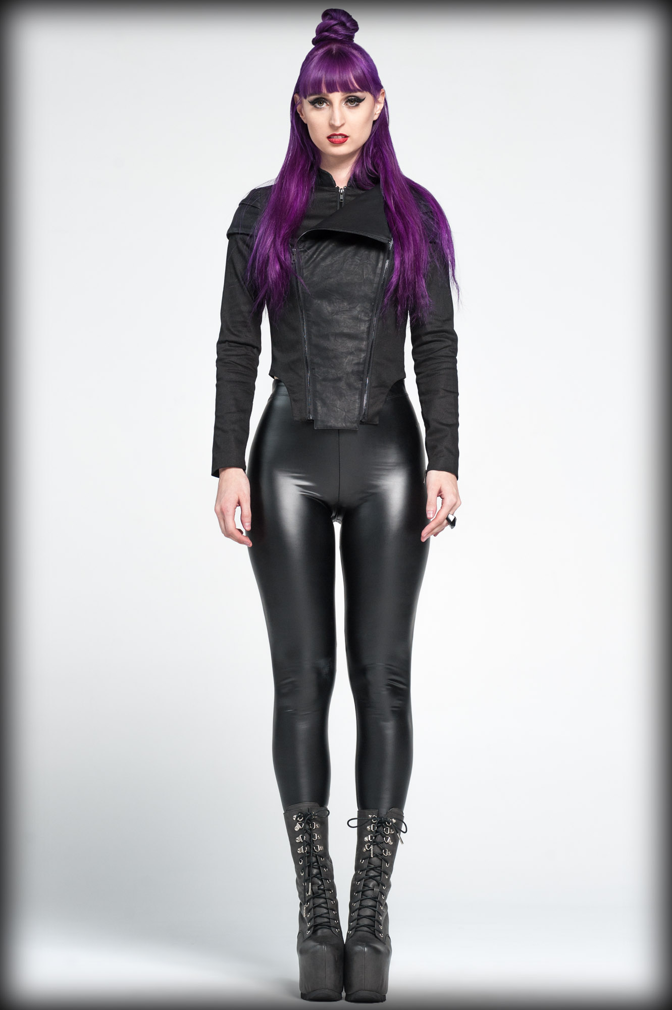Liquid smooth leggings in matte black. Made with specialty PVC that stretches in all four directions.